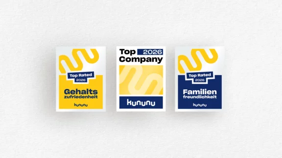 Bereits zum 5. Mal in Folge wurden wir als kununu Top Company ausgezeichnet. Zusätzlich erhielten wir das Top Rated-Siegel für Gehaltszufriedenheit (2025 & 2026) sowie das Top Rated-Siegel für Familienfreundlichkeit (2026). 🚀