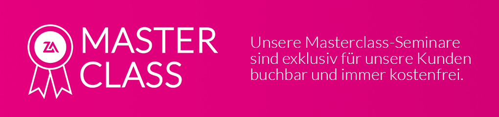Mehr Themen und mehr Tiefenwissen bietet ab sofort unsere Masterclass und zwar exklusiv für unsere ZA:kunden. Wir bringen Sie und Ihre Praxis nach vorn mit umfangreichen Updates aus den Bereichen Abrechnung, Praxisabläufe oder betriebswirtschaftlicher Optimierung. Und das alles in 60-90 Minuten. Die Einladung mit allen Themen und Terminen erhalten ZA:kunden monatlich exklusiv per E-Mail.